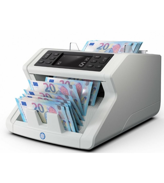 Cuente rápidamente. La contadora Safescan 2210 cuenta con precisión el número de billetes clasificados para todas las divisas y los verifica simultáneamente en hasta tres características de seguridad. Perfecta para cuando tenga poco tiempo. Gracias a su diseño, la pantalla optimizada y sus funciones automáticas, contar el efectivo será más fácil que nunca.