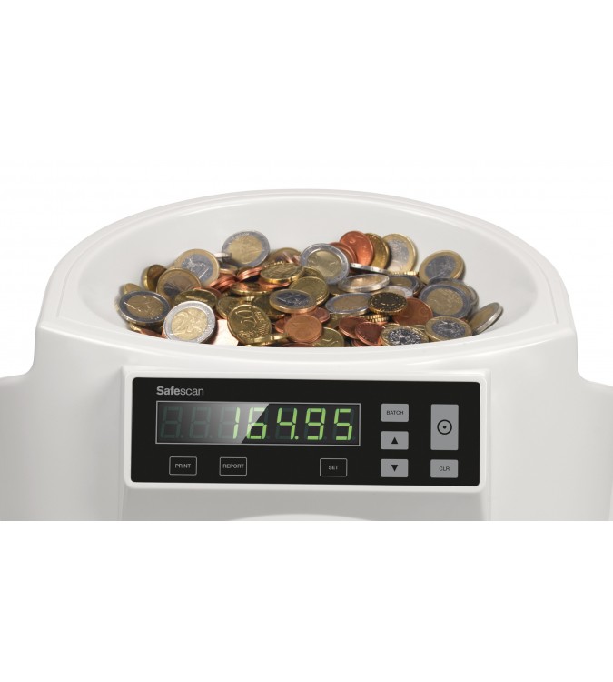 Gracias a la amplia tolva con capacidad para 500 monedas y con la velocidad de conteo de 220 monedas por minuto, el Safescan 1250 contará su cajón portamonedas en un instante. Simplemente coloque todas las monedas de la caja o bolsa en la tolva (no necesita clasificarlas antes), y pulse iniciar.