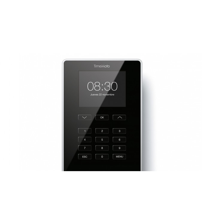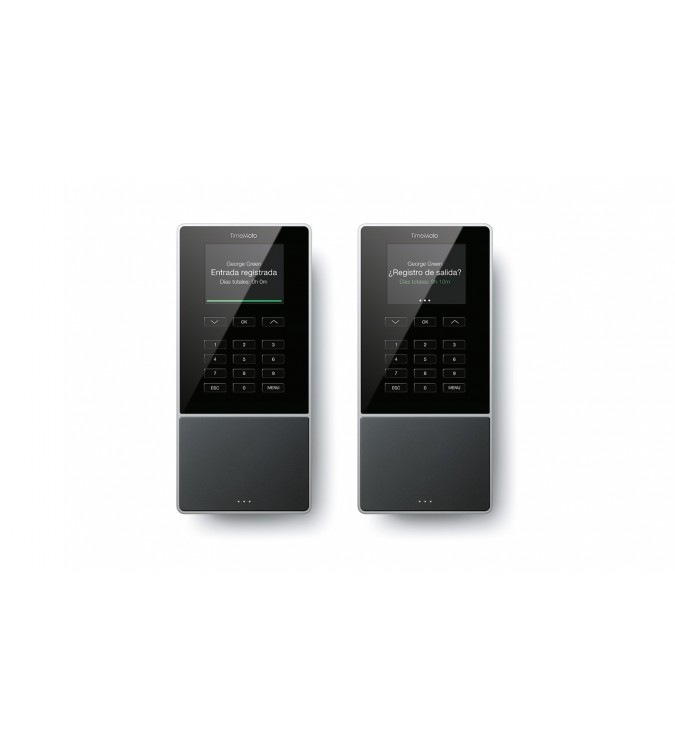 Mejore la entrada o la pared de su empresa con el elegante y duradero TimeMoto TM-616. Su pantalla TFT de tamaño medio de 2,8" muestra toda la información con gran detalle. Disfrute usando el sistema para fichar con el terminal de TimeMoto con su interfaz intuitiva fácil de usar. Introduzca códigos de proyectos fácilmente pulsando las teclas táctiles. Y al alcance de las manos de sus empleados, tiene los horarios y los totales personales.