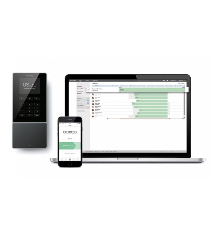 La potencia, escalabilidad y flexibilidad de TimeMoto Cloud lo convierten en la mejor solución de gestión de horarios y presencia para cualquier empresa. Acceda a TimeMoto Cloud usando cualquier navegador, la aplicación TimeMoto o en combinación con los terminales de TimeMoto. Todo totalmente accesible en línea. No tiene que instalar ningún software o comprar servidores. No es necesario pagar por actualizaciones; su TimeMoto se actualiza continuamente. Una solución flexible y rentable para todas sus necesidades de gestión de horarios y presencia, tanto si tiene diez empleados como diez mil.