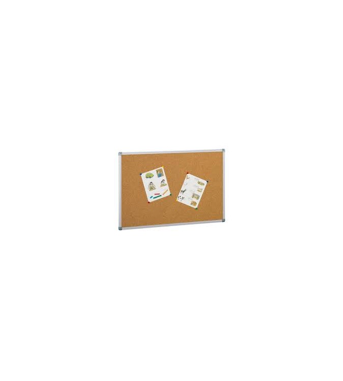 Tablero de corcho con marco de aluminio. Cantoneras decorativas. Permite montaje vertical y horizontal.