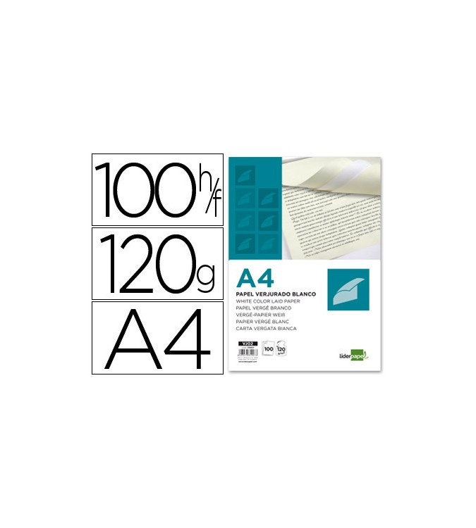 Papel verjurado liderpapel a4 120g/m2 blanco paquete de 100. Paquete de 100 hojas. Din a4.