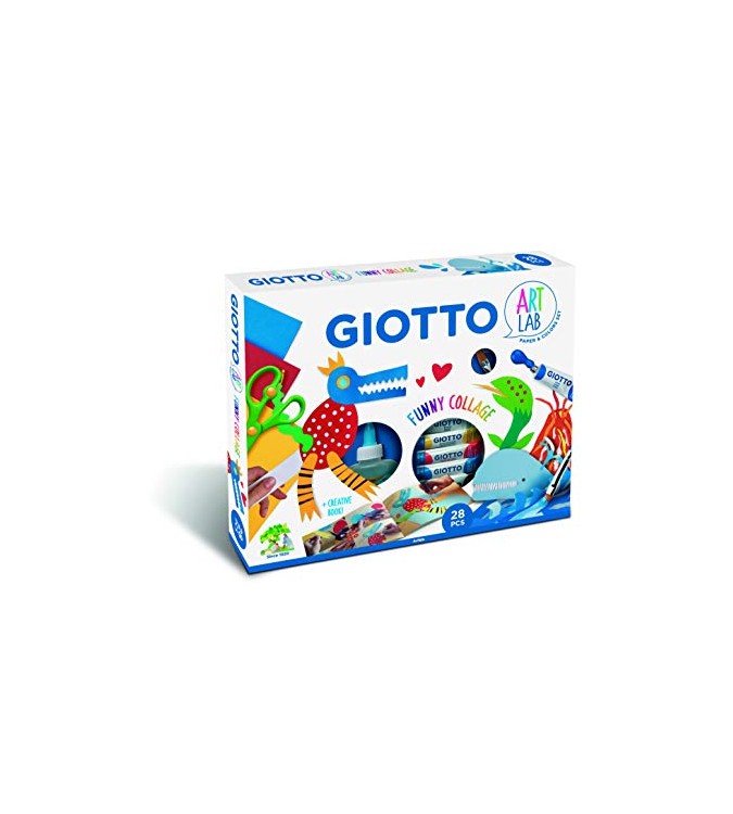 Contenido: 5 tubos de 10ml témpera Giotto, 1 bote Giotto Collage Glue de 120g, 1 pincel Giotto serie Taklon nº10, 1 tijeras, 1 álbum Giotto Kids formato A4 con 20 hojas de colores surtidos y un libro creativo.