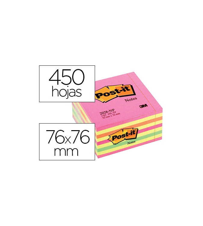 Los cubos de notas Post-it® están disponibles en una amplia variedad de colores y son ideales para quienes tienen mucho que decir. Contienen más notas que un paquete de blocs normales. Su tamaño, de 76 x 76 mm, es ideal para las necesidades cotidianas.