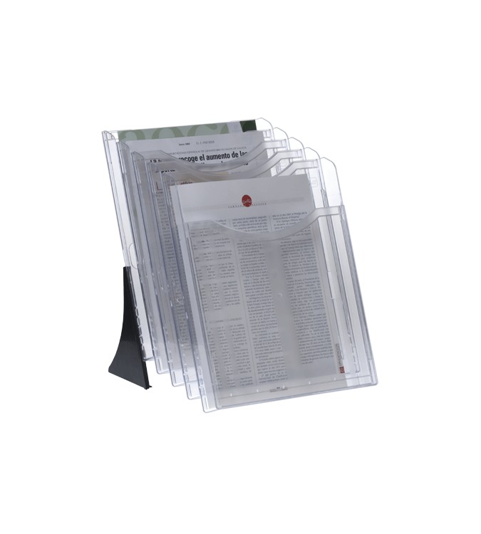 - Fabricado en poliestireno transparente de gran resistencia. - Aseguran una presentación atractiva y una fácil clasificación para sus folletos y material publicitario. - Se presentan totalmente montados. - Ideales para bancos, compañías de seguros, agencias de viajes, recepciones de hoteles, espacios de trabajo...
