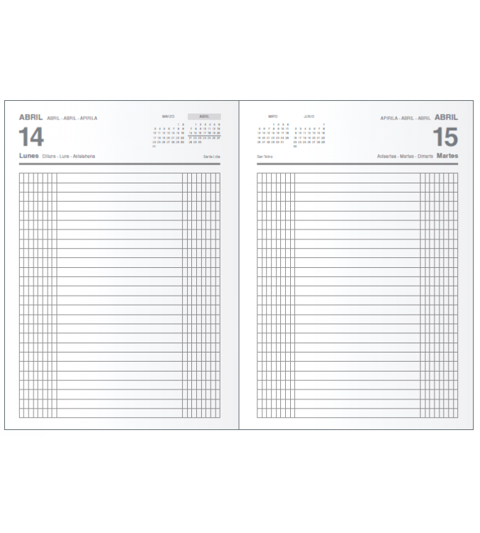 Sábado y Domingo en páginas independientes, Cabeceras en 4 idiomas (Castellano, Catalán, Gallego y Euskera), Onomástica y Calendarios.