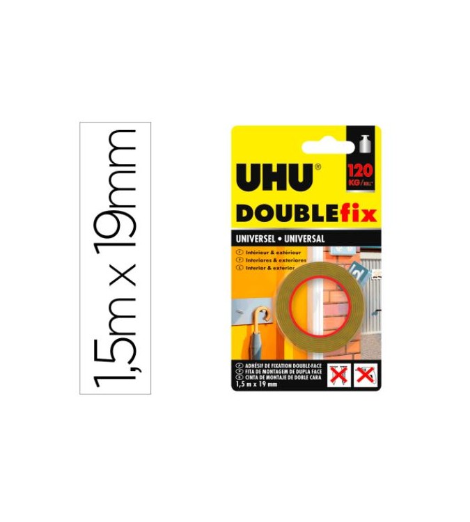 Cinta adhesiva uhu doublefix marron doble cara extra fuerte 1,5 mt x 19 mm. |