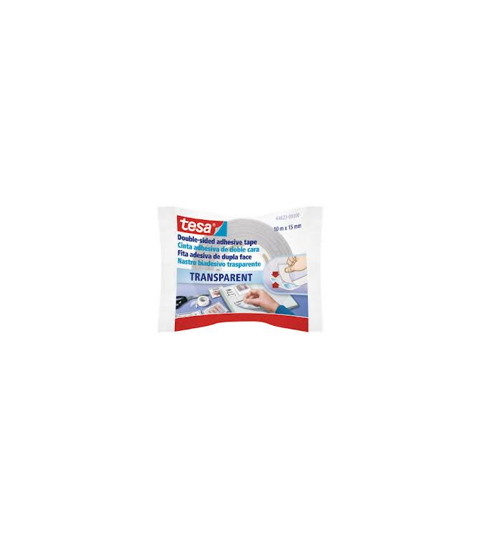 Rollo de cinta transparente doble cara. Adhesivo permanente ideal para montaje.