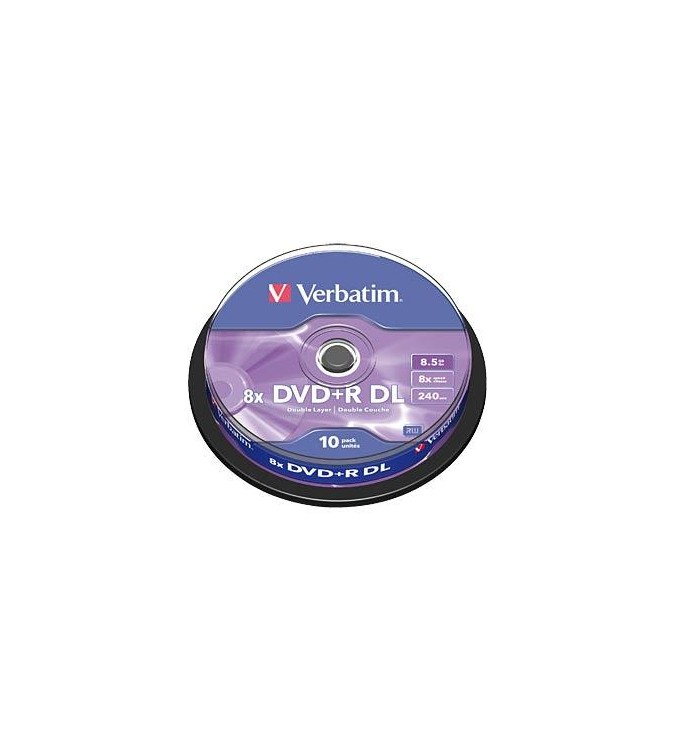 Verbatim DVD+R Double Layer Matt Silver 8x. Capacidad de origen: 8.5 GB, Tipo: DVD+R Dual Layer, Tiempo de grabación: 240 min.