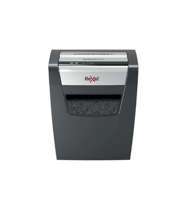 ¡La potencia para destruir más! La destructora de papel Rexel Momentum X312 destruye hasta 12 hojas de una vez, funciona ininterrumpidamente durante 6 minutos y es ideal para uso doméstico. La tecnología antiatasco del modelo X312 garantiza el funcionamiento ininterrumpido. P3, corte cruzado (partículas de 5 × 42 mm). Trituradora silenciosa con botones táctiles sencillos e intuitivos y papelera de 23 litros de capacidad (200 hojas A4).