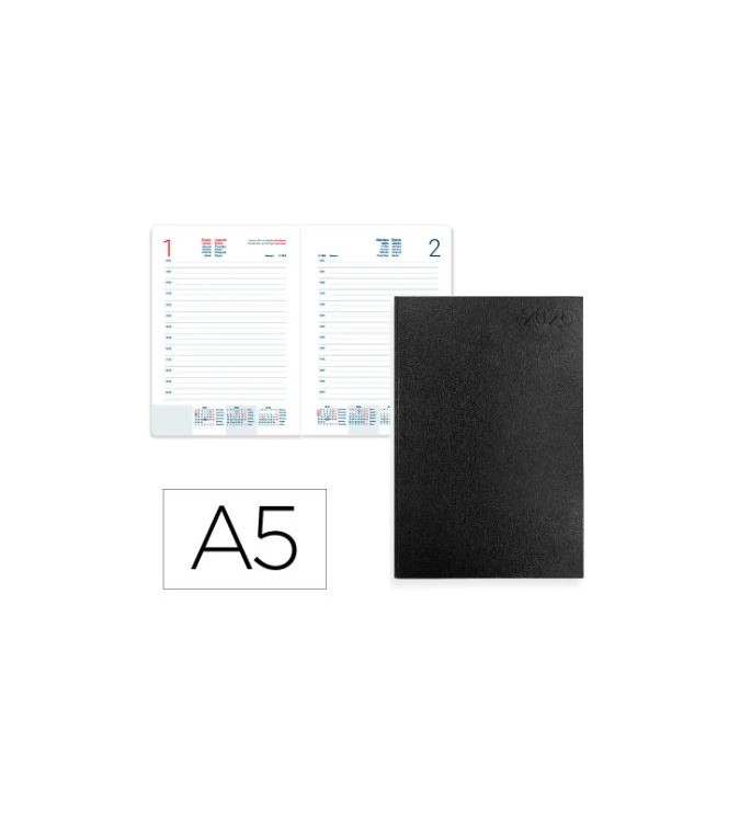Organiza tu año 2026 con esta agenda encuadernada de tamaño A5, diseñada para ofrecer una experiencia de planificación detallada y práctica. Su formato compacto y su tapa rígida de simil piel negra le confieren un estilo sobrio y profesional, ideal para el entorno laboral o personal. Con un sistema de un día por página, tendrás espacio suficiente para anotar todas tus citas, tareas y notas importantes con comodidad.