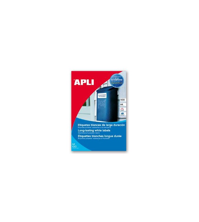 ETIQUETAS ADHESIVAS APLI POLIESTER BLANCAS RESISTENTE A LA INTERPERIE IMPRESION LASER