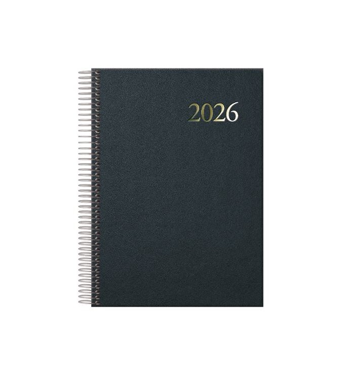 Encuadernación con espiral metálico.Bloque 336 páginas, impresas a 1 color, papel Offset Blanco 70 g.Interior con Sábado y Domingo en la misma página,