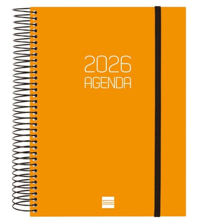 AGENDA 2026 ESPIRAL FINOCAM OPAQUE E10 15,5 x 21,5 CM DIA PAGINA NARANJA TAPA PP C/GOMA