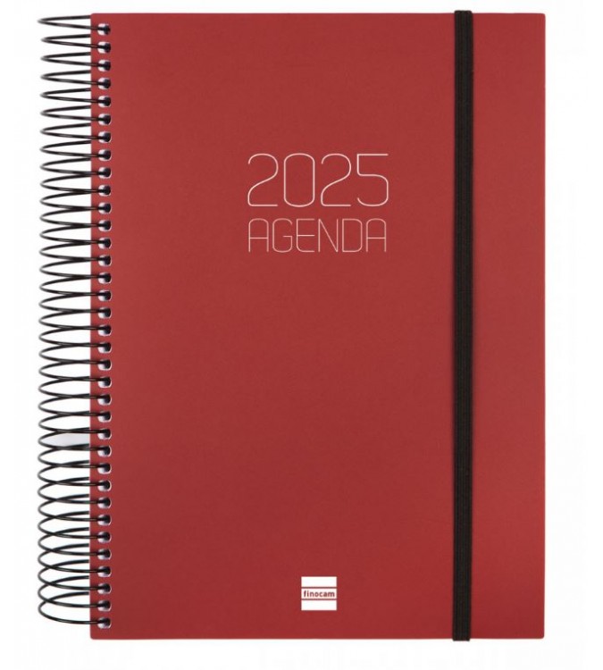 AGENDA 2026 ESPIRAL FINOCAM OPAQUE E10 15,5 x 21,5 CM DIA PAGINA BURDEOS TAPA PP C/GOMA