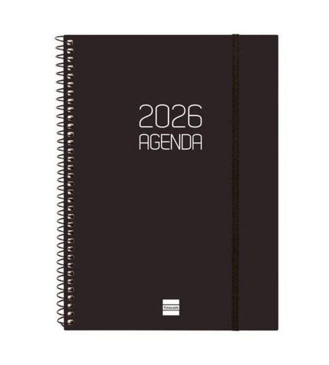 AGENDA 2026 ESPIRAL FINOCAM OPAQUE E40 A4 21x29,7 CM SEMANA VISTA NEGRO TAPA PP C/GOMA