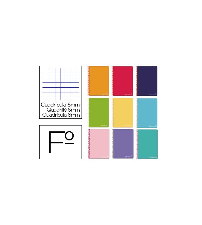 Cuaderno espiral liderpapel folio witty tapa dura 80h 75gr cuadro 6mm con margen colores surtidos. |