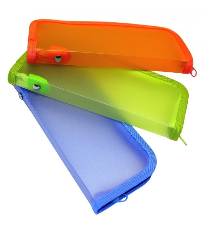 Portalapices cremallera de polipropileno. Colores surtidos. Medida exterior 8X20CM