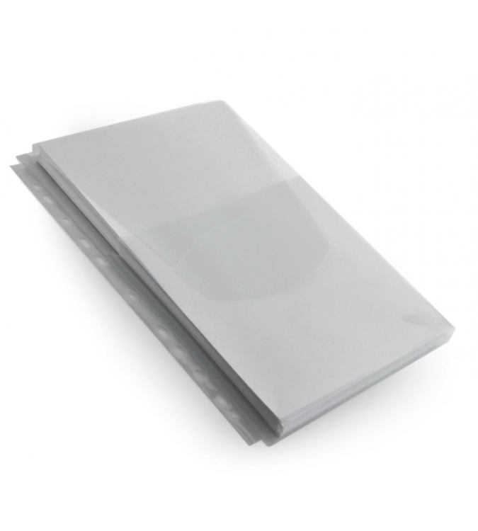 Funda fuelle bolsa de 10 fundas ideales para archivar amplia cantidad de documentos sin necesidad de perforar. Fabricada en pp. Fuelle de 20mm apertura superior con solapa de cierre.
