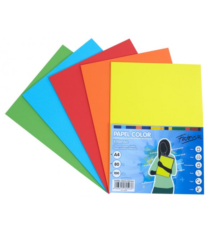 Tamaño A4 de 80g. Surtido de 5 colores intensos.