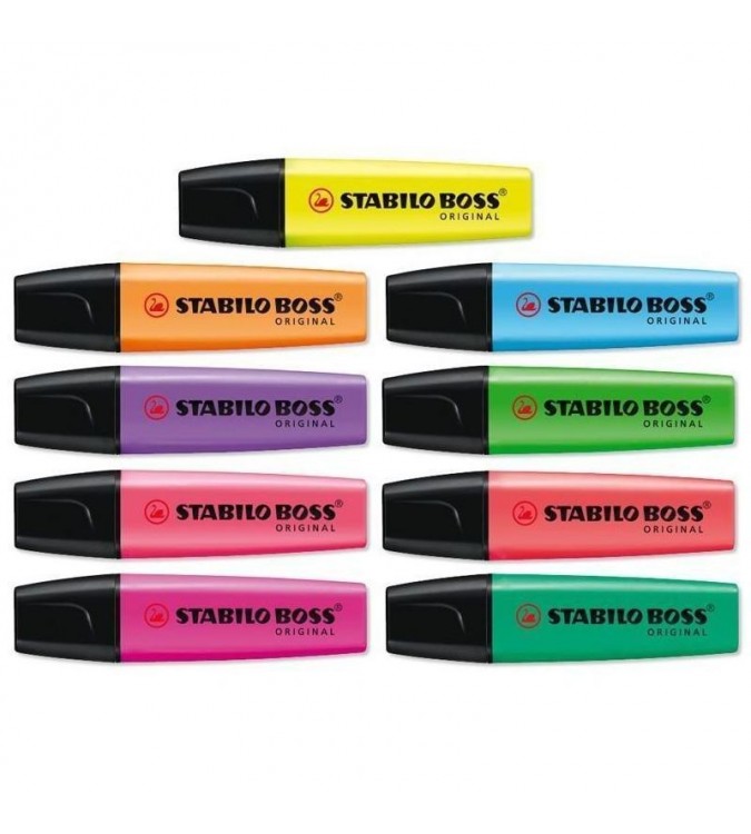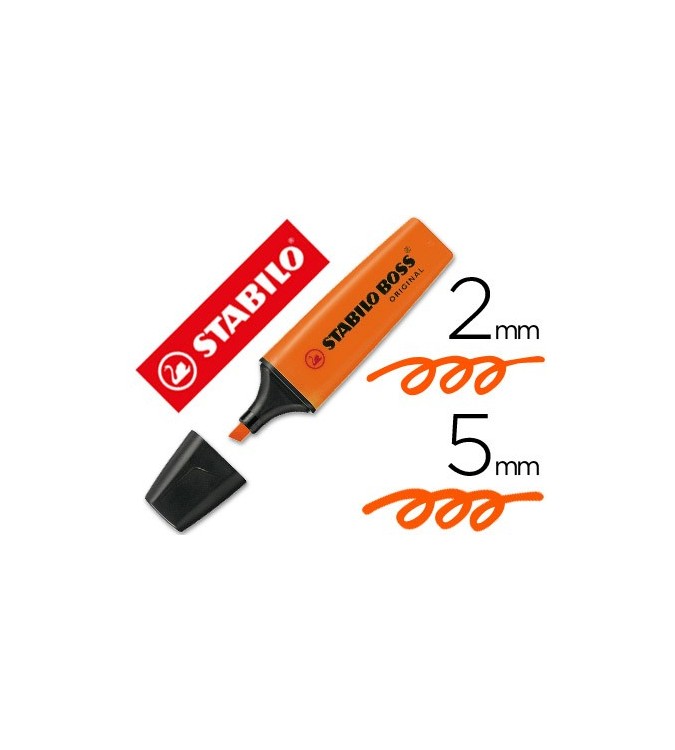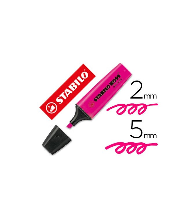 Marcador fluorescente 2 grosores de trazo. Tinta con base acuosa para papel, copias o fax. Recargable. Hasta 4 horas destapado sin secarse