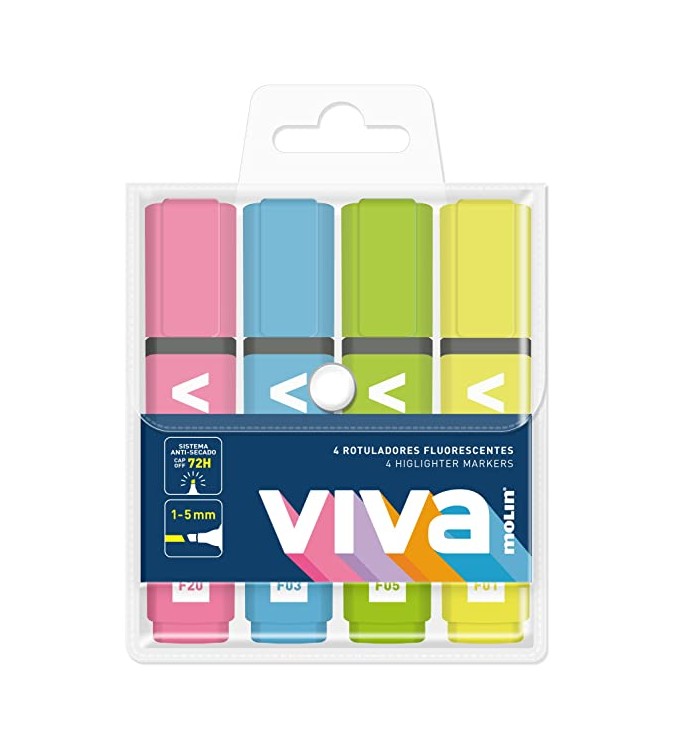 ROTULADOR FLUORESCENTE PASTEL 4 UNIDADES SURTIDOS VIVA/MOLIN