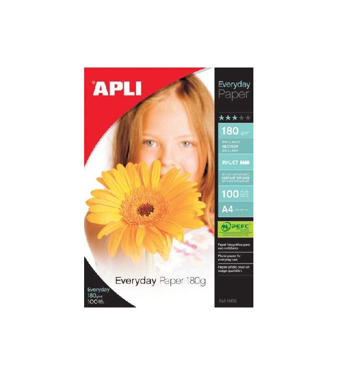 Papel apli everydey acabado glossy para inkjet. Papel de 180gr. Presentado en bolsa