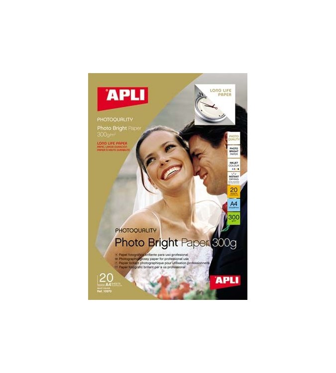 Papel fotográfico apli brillante larga duración para inkjet. Papel de 300gr. Acabado fotográfico