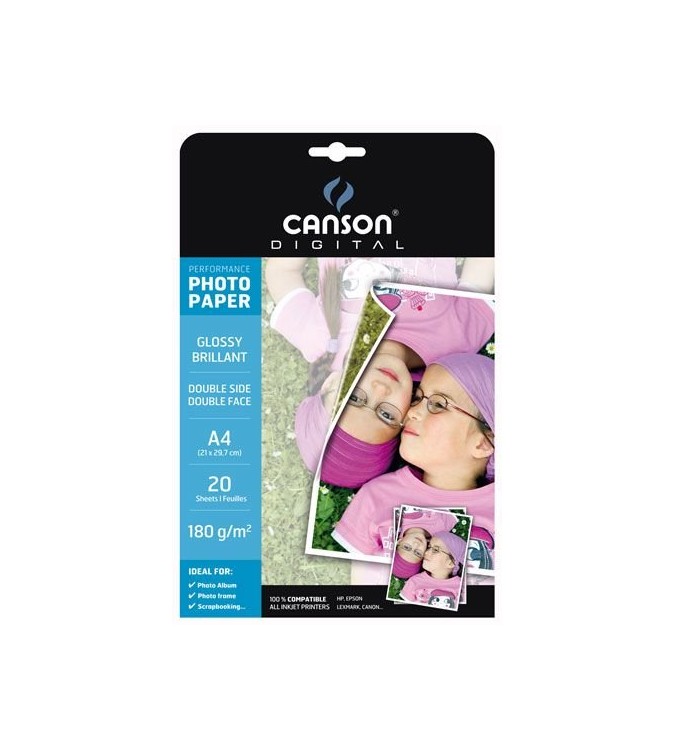 PAPEL CANSON GLOSSY DOBLE CARA A4 180 GR.INK-JET 20 HOJAS