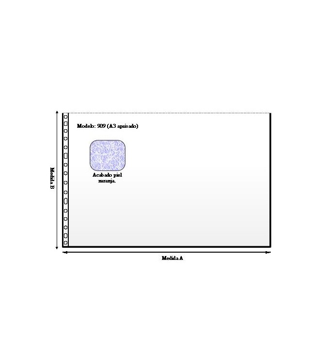 Fundas A3 apaisado 16 taladros en polipropileno piel naranja de 120 micras.