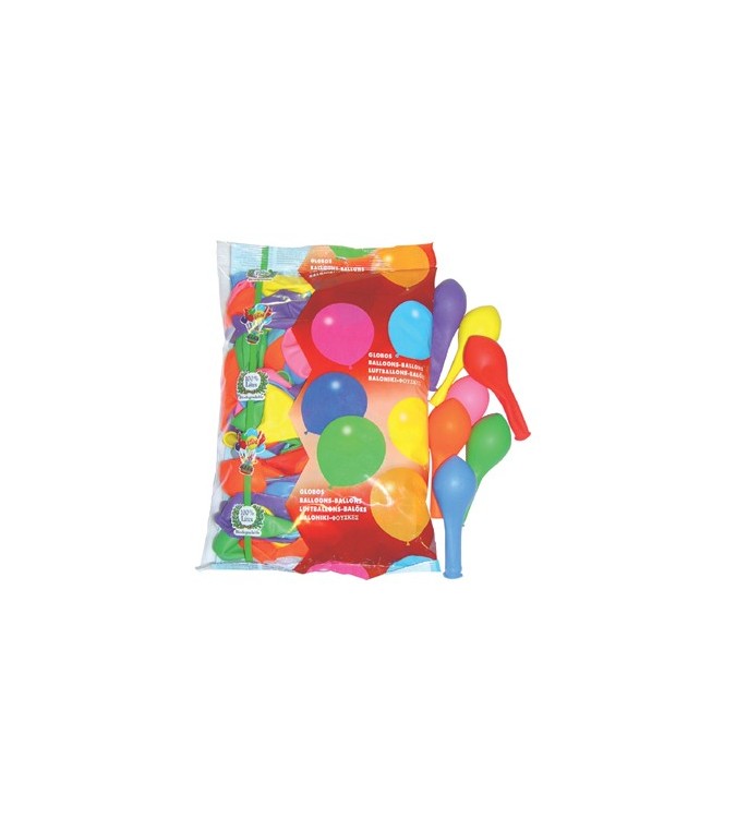 Globos de látex 100%. Ideales para fiestas. Colores surtidos. La bolsa de 100 unidades.
