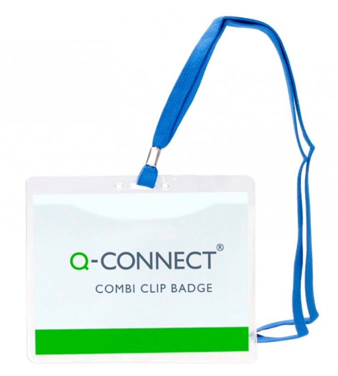Este identificador Q-Connect con cordón plano azul es la solución perfecta para quienes necesitan mostrar credenciales de forma clara y profesional en lugares como oficinas, eventos o ferias. Diseñado para ofrecer visibilidad óptima, este identificador facilita la lectura y manejo de documentos de tamaño A6.