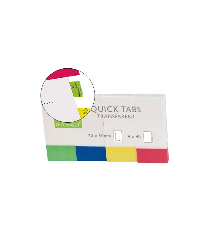 PACK DE 4 COLORES. 40 HOJAS X 4 COLORES TRANSPARENTE. MEDIDA: 20X50 MM. PARA ENCONTRAR FACILMENTE LAS PAGINAS DE INTERES.