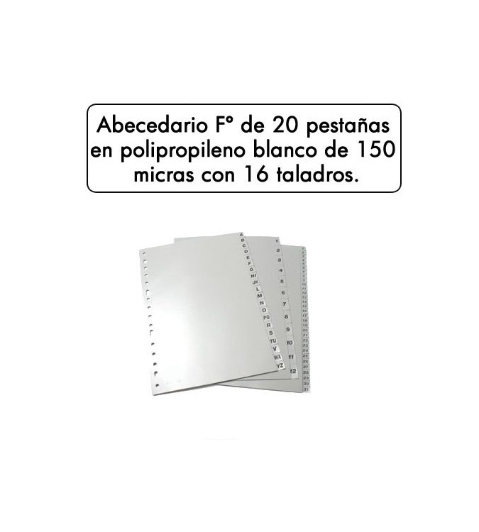 Abecedario 20 pestañas con 16 taladros tamaño folio color blanco de 150 mc.