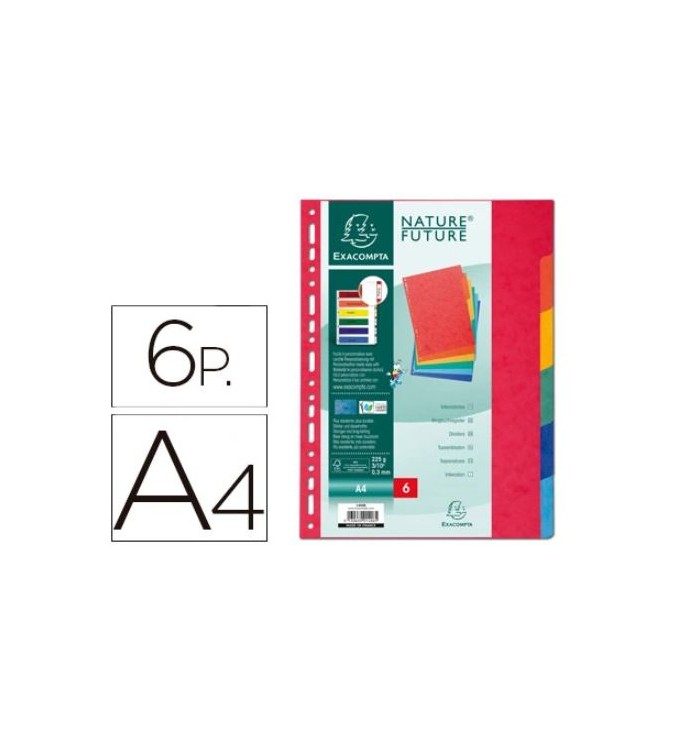 Juego de separadores fabricados en símil prespán de 225 g/m² en colores vivos. Con suave ilustración. Muy resistentes. Multitaladro. Incluye página de índices.
