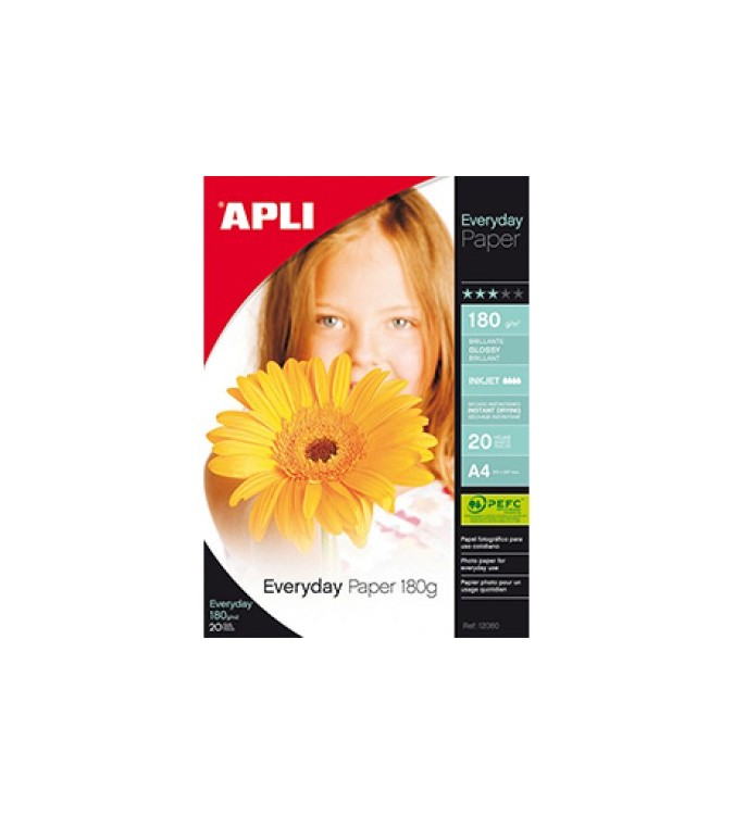 Papel apli everydey acabado glossy para inkjet. Papel de 180gr. Presentado en bolsa