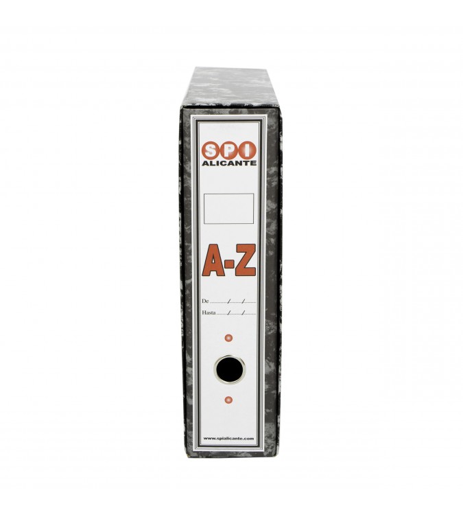 ARCHIVADOR A-Z FOLIO LOMO ANCHO JASPEADO NEGRO SPI CON CAJA