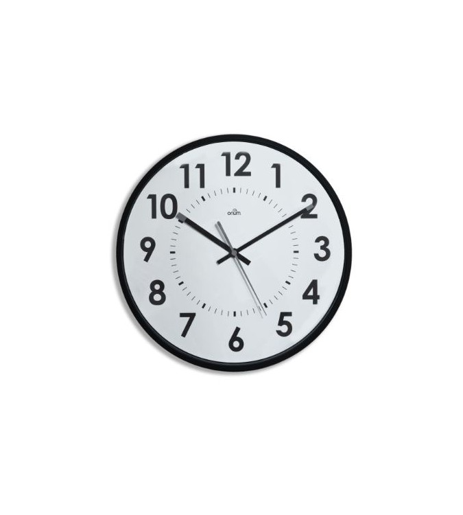Reloj de pared con esfera en color blanco, números en negro, aguja segundera del color del marco, aguja minutera con detalle del color del marco y vidrio de protección mineral. Un complemento de oficina, con marco ABS de alto impacto, que funciona con pila LR6 (incluida).
