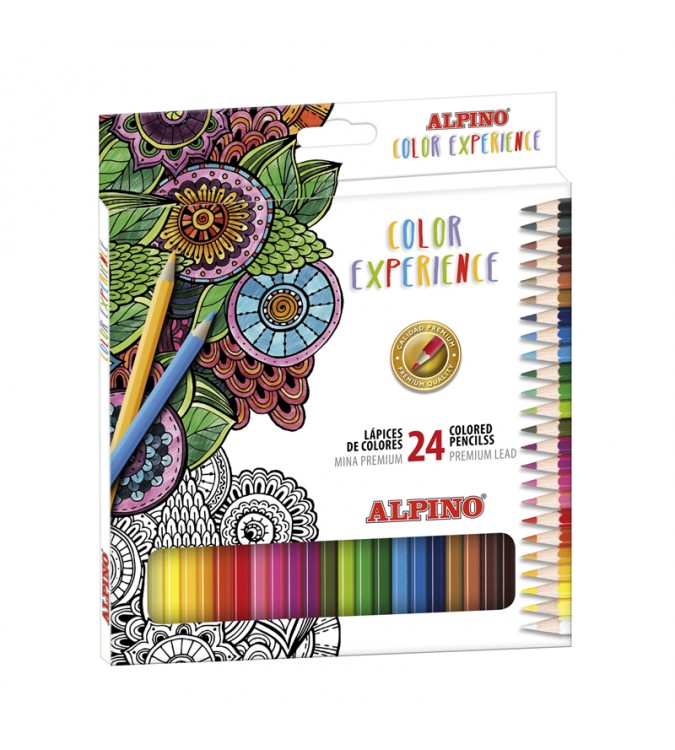 Estuche de 24 lápices ALPINO Color Experience con pintado de gran calidad. Su mina premium proporciona un pintado suave con posibilidad de degradar o enfatizar el color según la presión de aplicación. Los 24 colores son vivos y brillantes para un óptimo acabado. Son ideales para cualquier manualidad o hobby como pintar mandalas, lettering, colorear, hacer bocetos, etc.