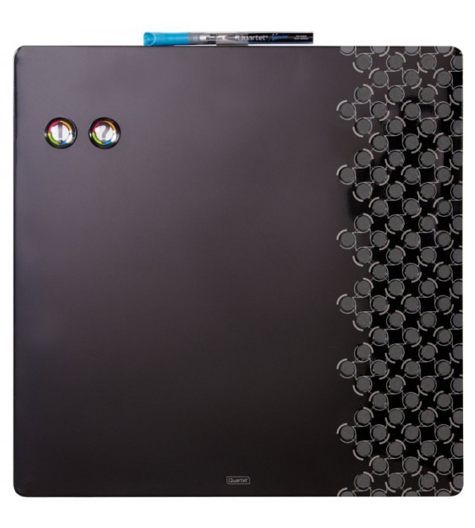 La elegante pizarra Quartet combinada magnética negra cuenta con pizarra de borrado en seco y superficie para fijación de anuncios.