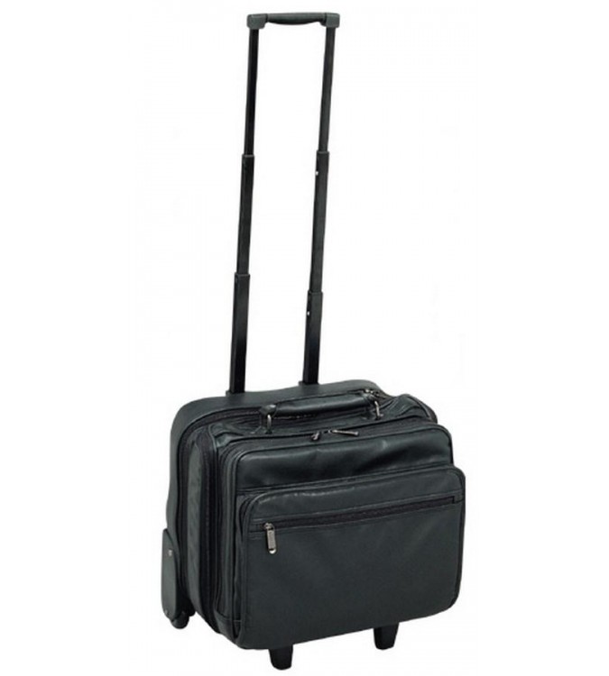 Maletines símil piel con varios departamentos internos y ruedas. Tirador extraible metálico.