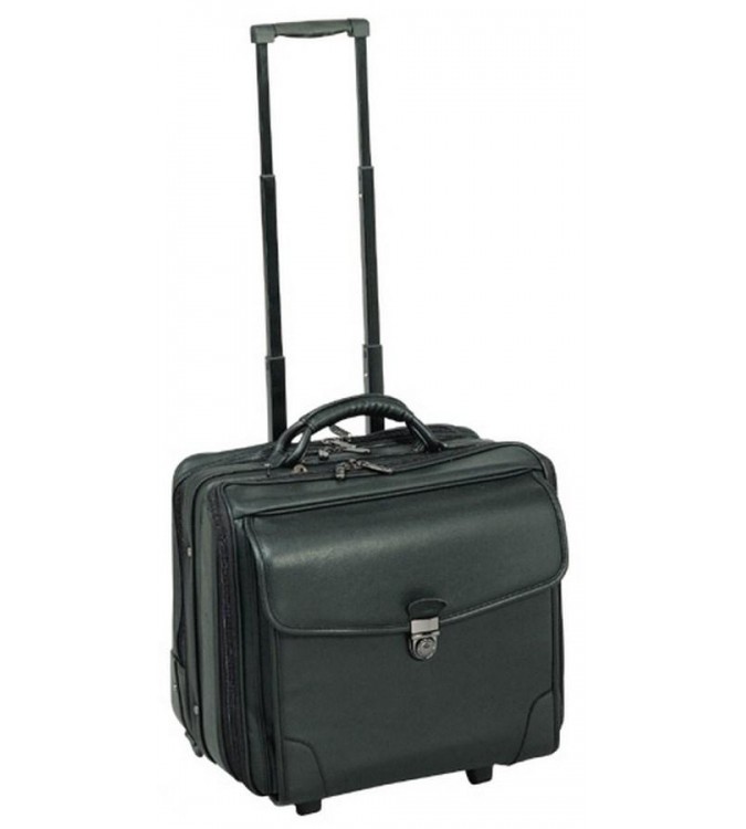Maletines símil piel con varios departamentos internos y ruedas. Tirador extraible metálico.