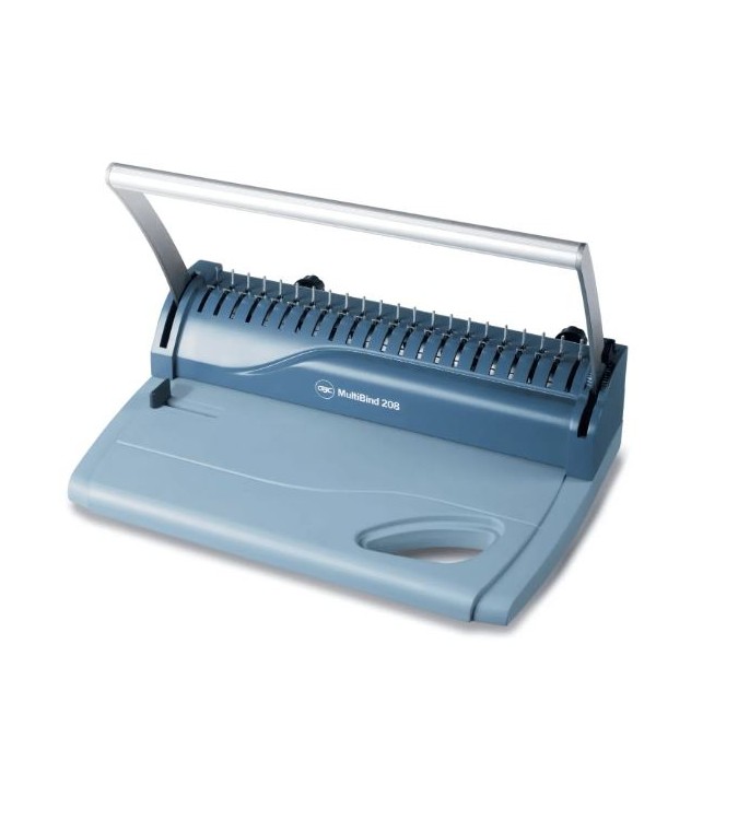 La MultiBind 208 es una encuadernadora multifuncional y duradera con la flexibilidad de producir documentos con espiral o alambre. Ideal para el hogar o la pequeña oficina, es ligera, práctica y fácil de usar. Puede perforar hasta 8 hojas de 80 g/m² a la vez y encuadernar hasta 125 hojas con espiral de 14 mm o alambre MultiBind de 21 anillas.