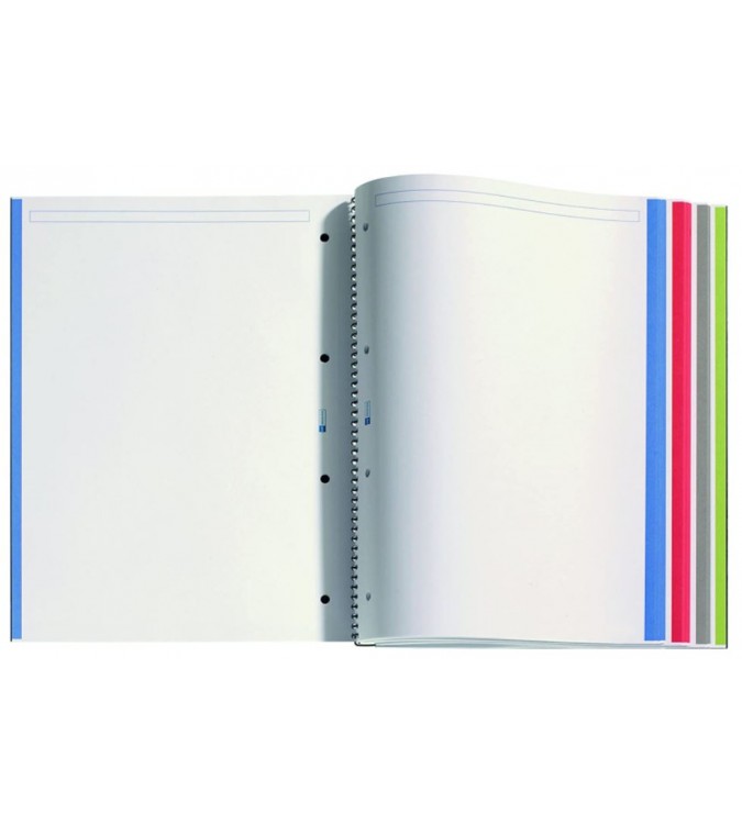 • CUADERNO A5 CON 4 FRANJAS DE COLOR para una mejor organización por asignaturas o temas. 160 HOJAS (40 por color) MICROPERFORADAS para arranque limpio y con 2 taladros para archivar.