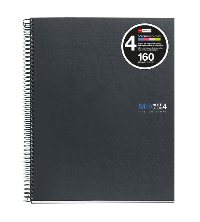 • CUBIERTAS DE CARTÓN extraduro color gris grafito. ESPIRAL CONTINUO con sistema COILOCK que permite abrir en plano del cuaderno, además de dar la vuelta completa y evitar enganches.