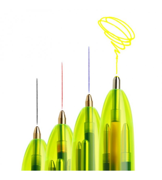 · Bolígrafo retráctil con 3 puntas de tamaño medio y 1 punta gruesa de color amarillo para resaltar.