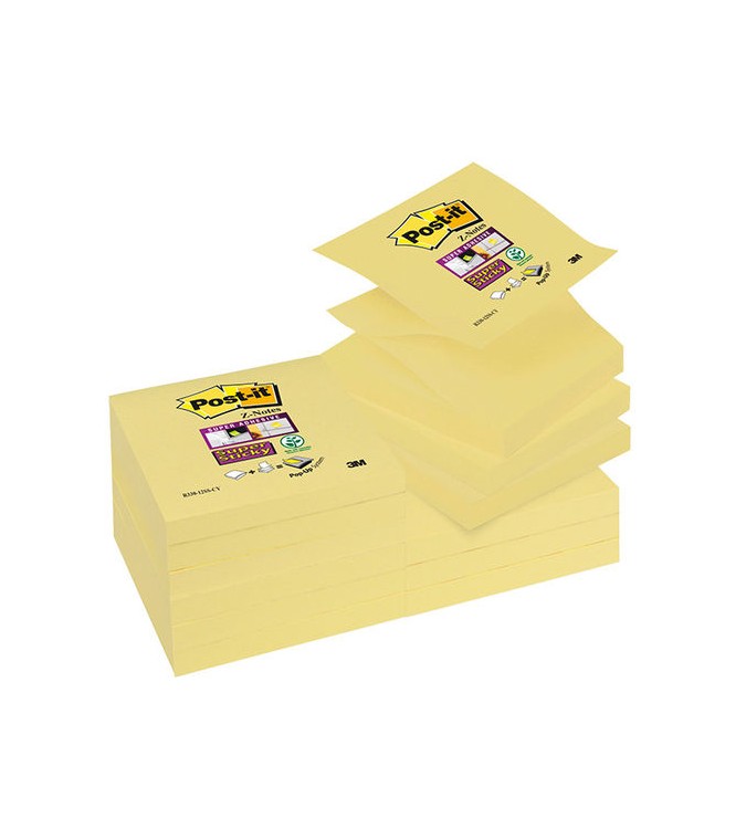Post-it® Super Sticky Z-Notas color Amarillo canario. Encelofanado individual. 90 Hojas/bloc