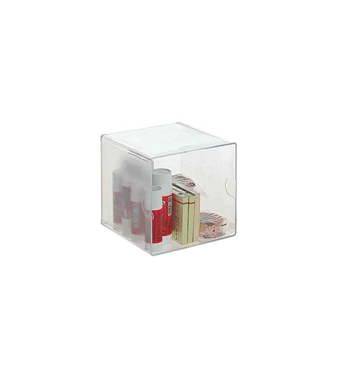 Archicubo hueco transparente cristal. Incorpora 2 clips de unión que permiten formar conjuntos con varias unidades. Fabricados en poliestireno transparente de gran calidad