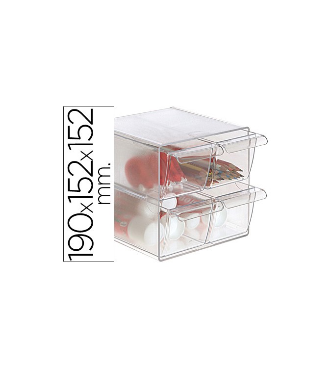 Archicubo archivo 2000 4 cajones organizador modular plastico 190x152x152 mm incluye 2 clips de sujecion. Organizadores modulares fabricados en poliestireno inyectado transparente de gran calidad y brillo. Permite unirlos y apilarlos en vertical y horizontal o con distintas combinaciones de cajones mediante clips de sujecion (2 por modelo). Ideal para organizar pequeño material de oficina, blocs de notas, boligrafos, cds, en estanterias y armarios. Cajones extraibles y de apertura independiente.