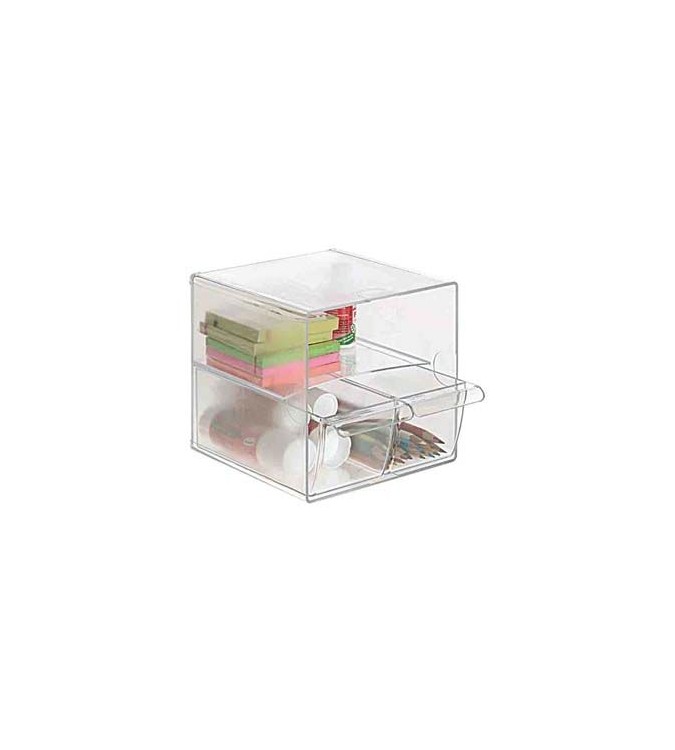 Archicubo con 2 cajones pequeños transparente cristal. Incorpora 2 clips de unión que permiten formar conjuntos con varias unidades. Fabricados en poliestireno transparente de gran calidad. Medidas ext cajón grande (fondoxanchoxalto) mms: 190x145x70. Med